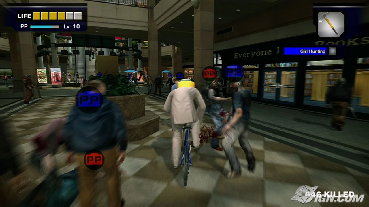 The Bicycle is a weapon in Dead Rising. The bicycle is a great way to travel throughout the mall, but knocking into zombies or hitting any object with the bike can cause Frank to fall off. The bike can run over several zombies at once, but Frank will have to get back on it a number of times.