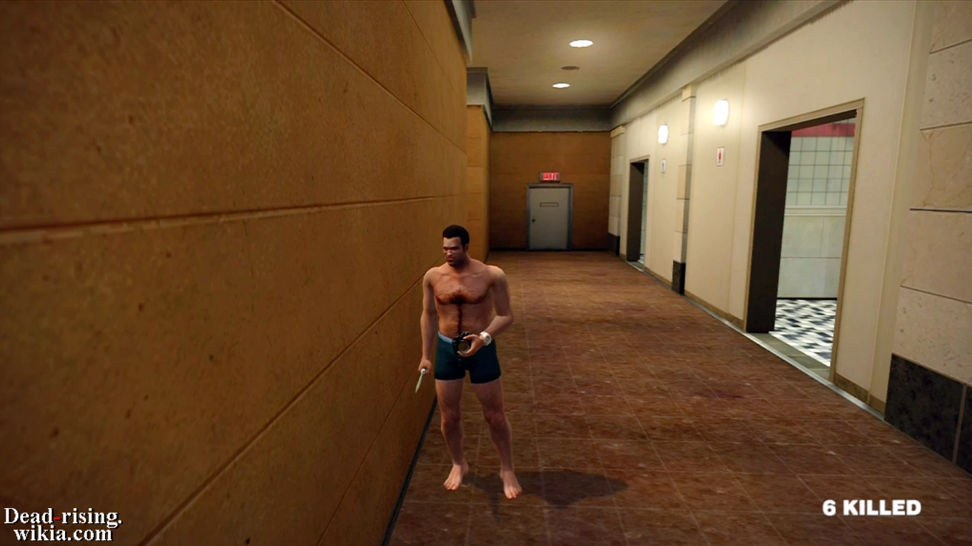 - ↑ Gamefaqs.com incorrectly states that the restroom mirrors remove masks. This mirror did not remove the Bear Mask, nor the Black Baseball Cap. The mirror does remove glasses though.