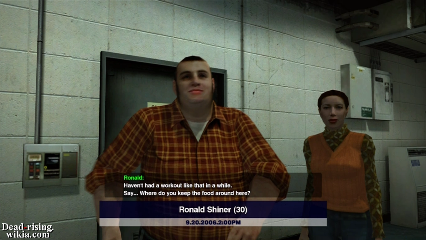 Ronald Shiner is a hungry Dead Rising survivor in the scoop Restaurant Man. Frank will need to give Ronald some of his food to get him to join.